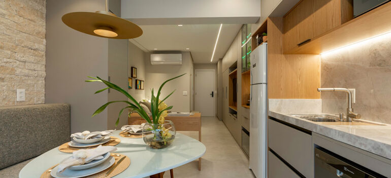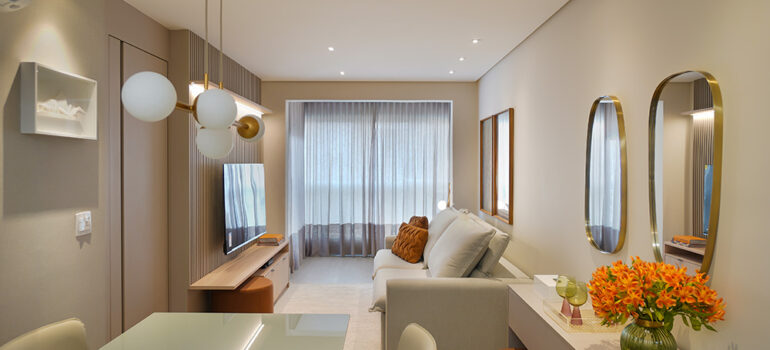 O resultado é um estúdio compacto, mas cheio de soluções que ampliam o conforto, a estética e a funcionalidade do dia a dia.